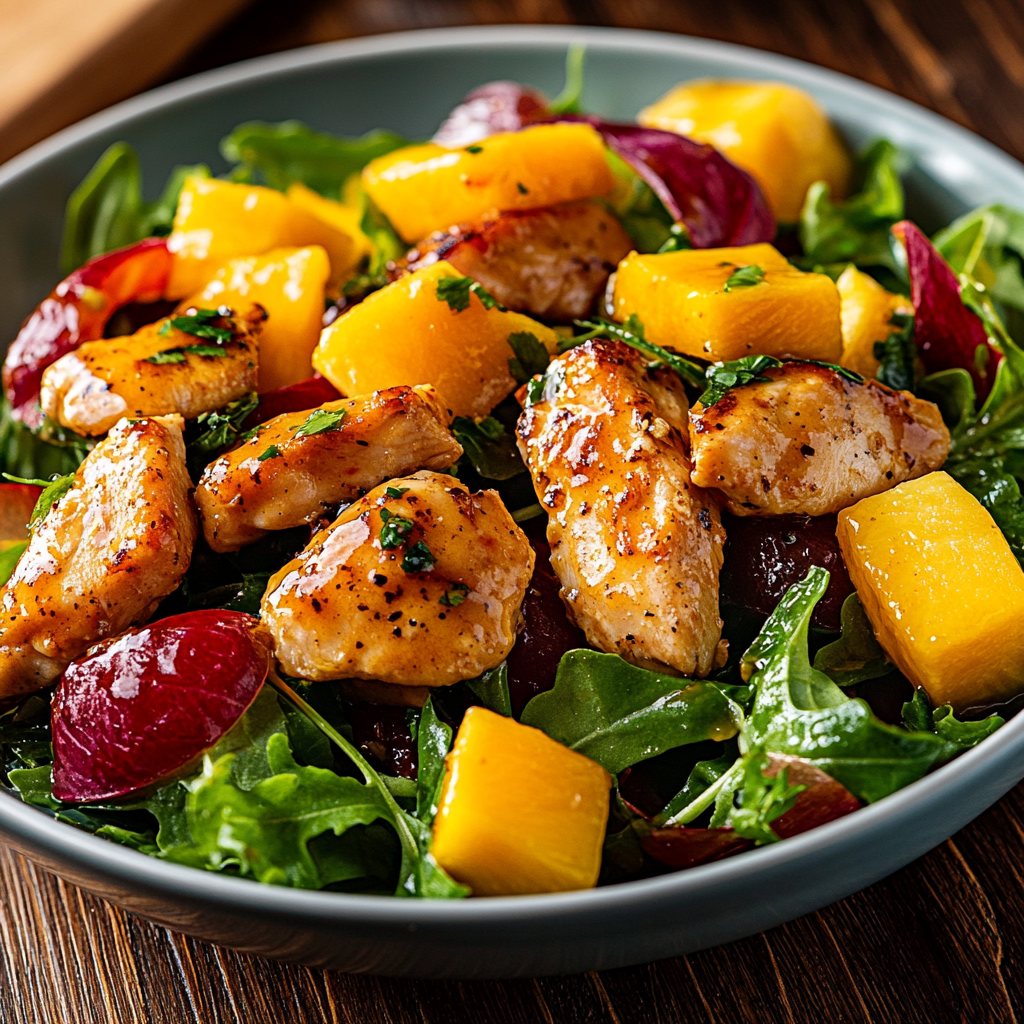 Glazed Chicken Mango Salad with Honey Vinaigrette is a dish that feels like sunshine on your plate. The golden glaze
