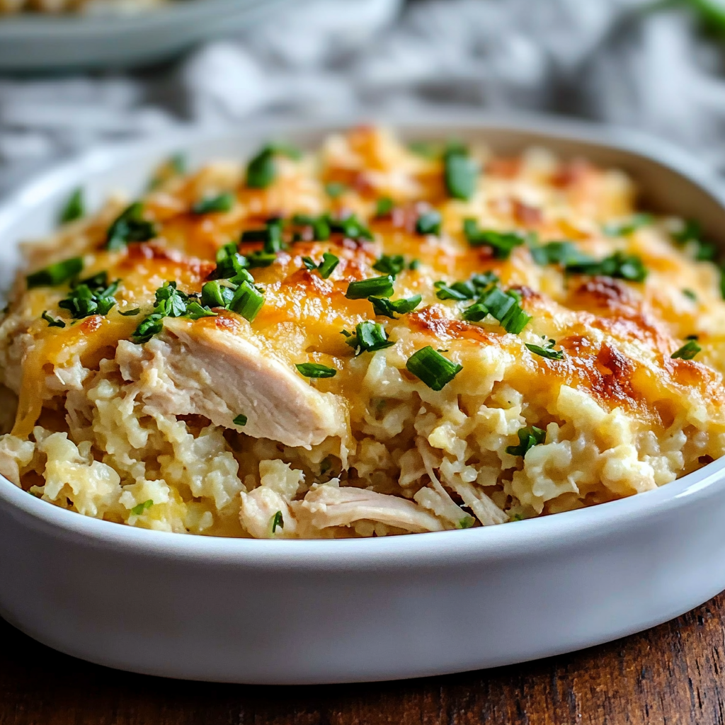A low-carb comfort meal featuring tender shredded chicken, light cauliflower rice, and a golden, melty cheese crust. Perfect for quick weeknight dinners or meal prepping, this recipe balances heartiness with nutrition.